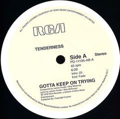Tenderness - A short-lived Disco project helmed by James Purdie and Skip Mahoney only released one 45 and one 12" single during their brief existence. Known for their work with Chuck Brown & The Soul Searchers & Frank Hooker & Positive People and many more, this duo were undoubtedly a highly talented producer, songwriter and keyboardist combination. Originally released on RCA in 1978 'Keep On Trying' was an underground club hit. The record still packs an immense punch today, it's a mixture of tough streetwise drums and percussion and swooping dramatic strings and brass will surely hit the spot for Disco aficionados. The kind of record you can imagine causing all out pandemonium at the Garage while the scents of amyl and sweat fill your nostrils. The kind of record that would make everyone on the raised stages and podiums at the Powerhouse whoop and holler in collective joy as Frankie stylishly segues it into a punishing percussion break-down. Yep. It's THAT kind of Disco record, so rare and so coveted that even the infamous DJ Harvey put it over his knee and gave it a good editing way back when. There's been a shedload of poor imitations knocking around, dodgy Euro bootlegs etc, but this 2017 repress is from the MASTER TAPES (Yes, we can prove it) and is fully, 100% LEGIT in every way. 'Keep On Trying' - now available again, released in conjunction with RCA. Back on the streets. Same as it ever was! Essential Disco heat here, buy on sight!