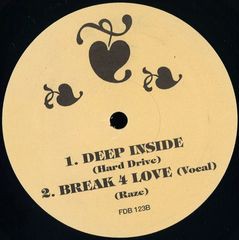Here we have 3 killer tracks all on one 12". We open with "FOLLOW ME" by ALY-US. Originally released in 92' & a definite crowd pleaser. Next we have "DEEP INSIDE" by HARD DRIVE aka LOUIE VEGA with BARBARA TUCKER on vocals. To end, "BREAK 4 LOVE" by RAZE was released in 1988.