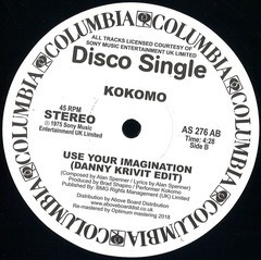 'Use Your imagination' by 'blue-eyed' Funky rock combo Kokomo is a deep cut from the pre-Disco era of 1975. A time when uptempo R&B and Rock records like this were de rigueur with DJ's and dancers on the dancefloor's of clubs across NYC and all major cities where 'proper' dance music was appreciated and taken seriously. The years leading up to the Disco boom blessed us with some fantastic records like this that carried over into that late 70's era, 'classics' that still got love from the DJ's and were sequenced alongside the hits and anthems of the day. Featuring members of Joe Cocker's Grease Band, Kokomo had a few hits and were widely known, 'Use Your imagination' though, was their nightclub classic, a breezy, jazzy and funky jam that rolls just right and is incredibly rare and sought after on promo 12". Backed here with an exclusive unreleased edit on the flip you know this is an essential if you're a true Disco-head! This repress of the original Columbia promo from 1975 is backed with a brand new re-edit from one of NYC's Disco kings - Mr.K aka Danny Krivit. With almost half a century spent behind the turntables in NYC and beyond he surely understands records like 'Use Your Imagination' intrinsically, he was, after all, there when it all happened! This classic has been legally reissued by Above Board distribution in conjunction with the legal rights holders - Sony Music Entertainment. This high quality repress features original white label Columbia label Disco 12" artwork and has been remastered from Sony's original sources by Optimum Mastering, Bristol UK.