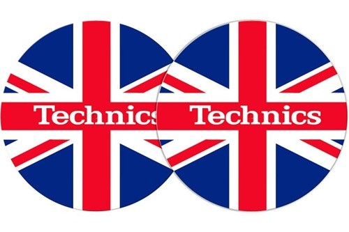 Stampa esclusiva: logo bianco Technics su sfondo bandiera del Regno Unito