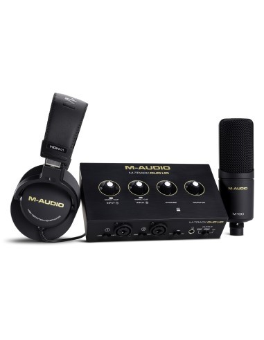 Pacchetto all-in-one composto da interfaccia audio M-Audio M-track Duo HD, microfono a condensatore con diaframma grande M-Audio M100, cuffie da studio M-Audio HDH41 e i software musicali Ableton Live Lite, Reason+, Akai Professional MPC Beats e 2 mesi di abbonamento a Splice per usufruire di una vasta libreria di campioni e loop. N.B. Verificare nel sito del costruttore i requisiti minimi di sistema e i sistemi operativi Mac, PC, iOS e Android attualmente supportati.
