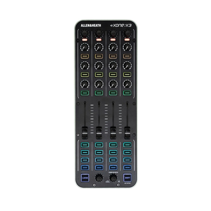 L’Allen & Heath Xone:K3 è un controller MIDI professionale progettato per DJ, produttori e performer che cercano un controllo preciso, diretto e flessibile del proprio setup digitale e hardware. Pensato per offrire un’esperienza tattile immediata e intuitiva, è ideale sia per il live che per lo studio, consentendo di gestire con precisione software, strumenti virtuali e apparecchi esterni. Compatibile con le mappature dei precedenti modelli K1 e K2, il K3 mantiene la stessa logica operativa, risultando familiare per chi già utilizza controller della serie Xone. Grazie all’app gratuita Xone Controller Editor, è possibile personalizzare completamente il comportamento del dispositivo: assegnare comandi MIDI CC e Note, definire i colori di retroilluminazione RGB, gestire i layer e salvare le mappature nella memoria interna o come file condivisibili per backup e collaborazione. Il pannello di controllo compatto ospita 52 controlli fisici distribuiti tra fader, encoder, potenziometri e pulsanti retroilluminati, con 3 layer indipendenti che permettono di gestire fino a 174 parametri MIDI. Questa flessibilità lo rende perfetto per setup complessi, ibridi o performance dal vivo. Costruito con uno chassis in metallo pressofuso, l’Xone:K3 è robusto e pronto per l’uso intensivo in tour o in club. I potenziometri fissati con dado, i pulsanti solidi e la costruzione curata garantiscono affidabilità e durata nel tempo, mentre il design sottile si integra perfettamente accanto ai mixer della serie Xone. La connettività include USB-C e X:Link, rendendolo pienamente compatibile con i mixer Xone:96, PX5, 43C e 23C. Il supporto per configurazioni a topologia “star” consente di collegare più unità K3, riconosciute in modo indipendente dal software per un controllo modulare su larga scala. Essendo un dispositivo class compliant, non richiede driver e funziona immediatamente con qualsiasi sistema compatibile MIDI, inclusi macOS, Windows, iOS e Android. In un formato compatto ma potente, il Xone:K3 combina design professionale, versatilità e affidabilità, rappresentando la scelta ideale per chi desidera il massimo controllo e una configurazione MIDI su misura.
