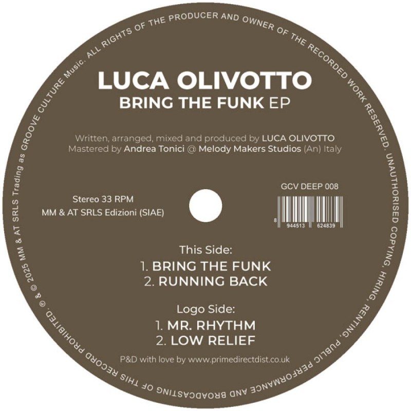 Luca Olivotto returns to Groove Culture Deep with a new four-track EP entitled: “Bring The Funk EP”, A great exploration of deep house that seamlessly blending classic influences with a modern, dancefloor-driven touch. Olivotto's expertise shines through, creating an atmosphere that is both nostalgic and cutting-edge, ensuring a brilliant journey on this new release.‘Bring The Funk' EP is a testament to the evolving soundscape of Luca. This collection promises to captivate enthusiasts and DJs alike.