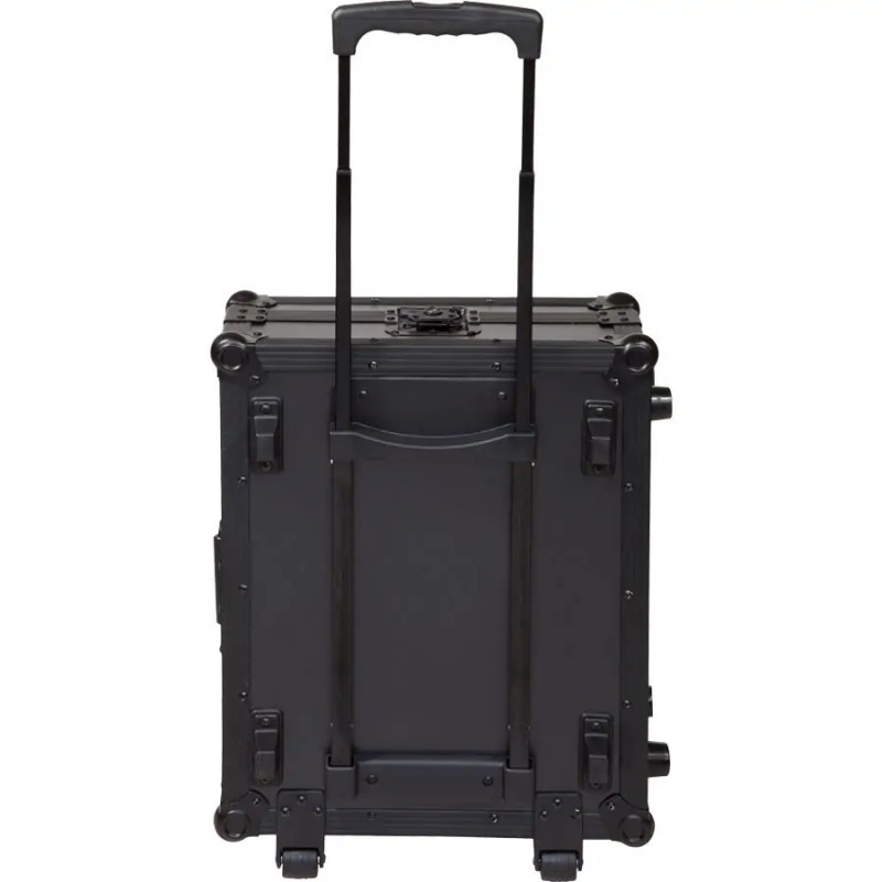 Flight case specially designed for the protection for turntables Black, with rear port for cable through and industrial grade rubber feet. Handle with extensible Trolley and wheels. The Walkasse flight case are made with high quality materials. Stylish black/silver finishing.